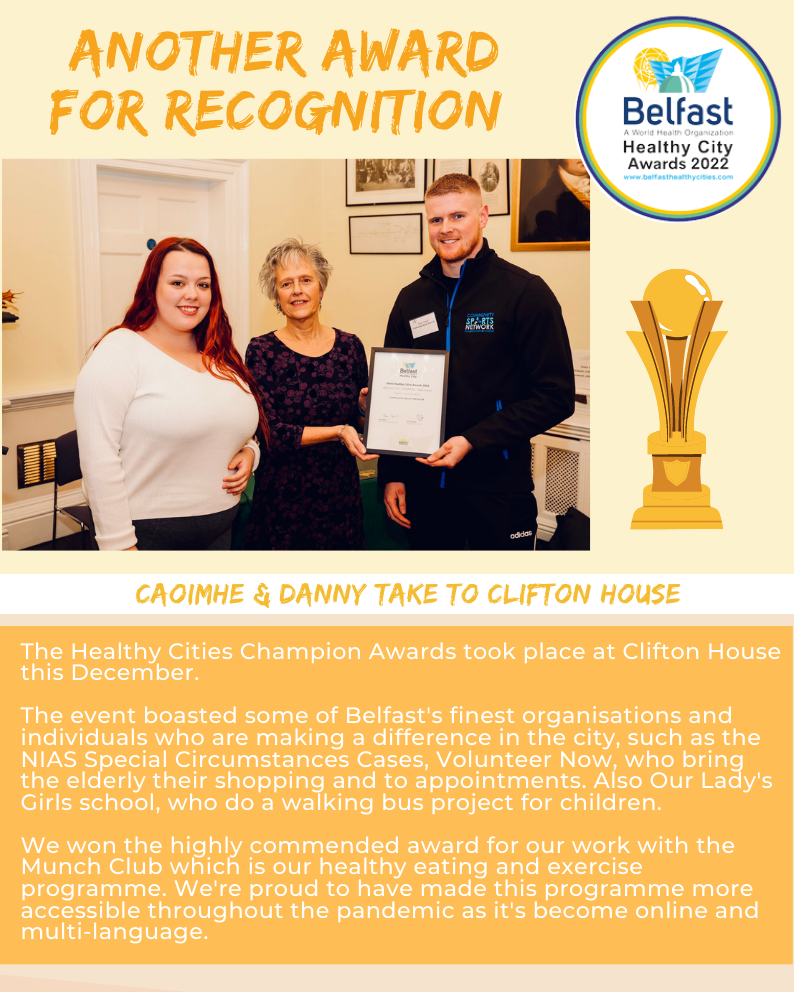 Our Munch Club programme was nominated for the Healthy Lifestyle category at the Belfast Sports Awards last night. Here’s Peter and Danny attending the ceremony at the City Hall last night.