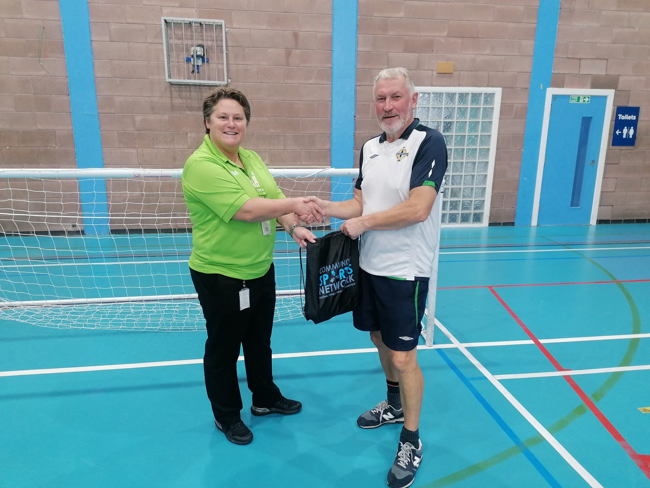 As part of Community Sports Network’s continued support for Men’s Health Week, we hosted a Danderball tournament and health fayre at Avoniel Leisure Centre. The day was a great success with around 75 participant’s spread across 7 teams competing in friendly competition throughout the day.